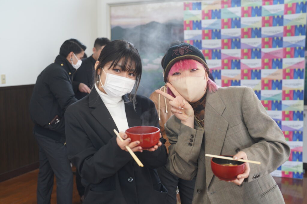 式が終わると、理事長先生から皆へお雑煮をご馳走~🙌😊