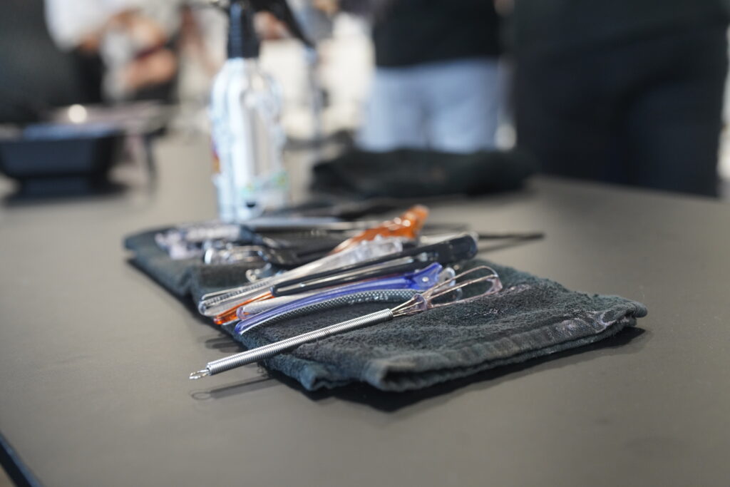 生徒はモニターを見ながら、スタッフさんの補助のもと実際にウィッグへ施術を行い、とても贅沢な時間を過ごすことができました。