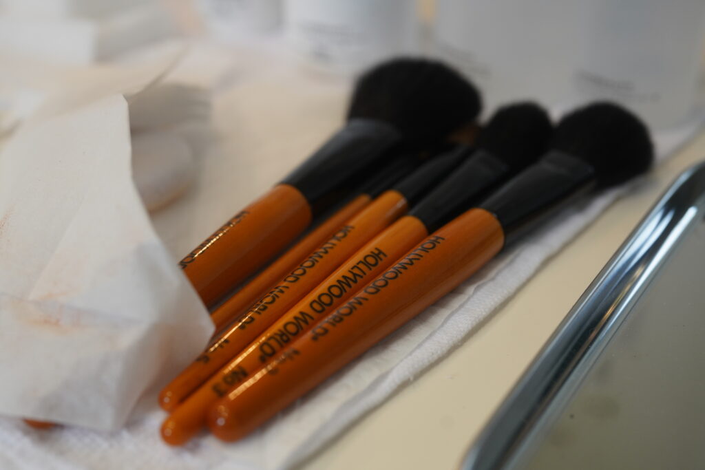 ちなみにメイクに使用する道具「ブラシ」は特注で本校の校名がプリントされております!