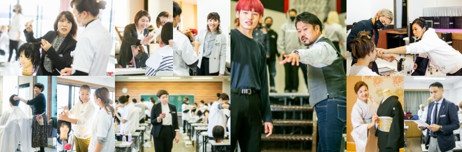美容師、理容師、美容部員、メイクアップアーティスト、ブライダリスト、エステティシャン、ネイリスト、アイリストなど様々な道を目指すことができる、日本で最もきめ細かなコースラインナップです。