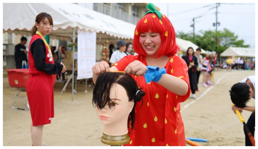 福岡県柳川市にあるハリビは、生徒数600名、のびのび成長できる広大なキャンパス。新校舎も2021年にオープンし、街中がキャンパスです。ヘアーショーなども行うホールも完備。更にお客様が実際に訪れる美容室やサロンも校内にあるので生の体験も!